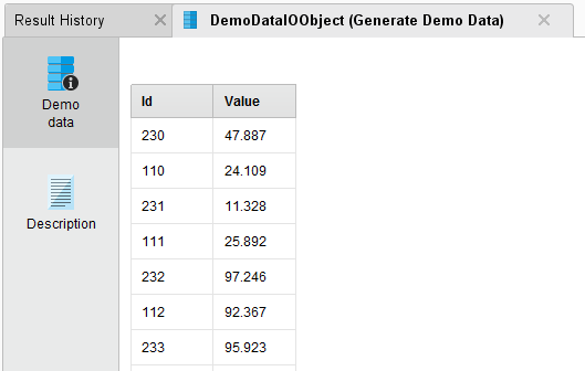 The example fetches the values from the DemoData object and sets the values of the IOObject. Then, the output port delivers the DemoDataIOObject, thus making it available for other operators or connecting it to other ports in general.