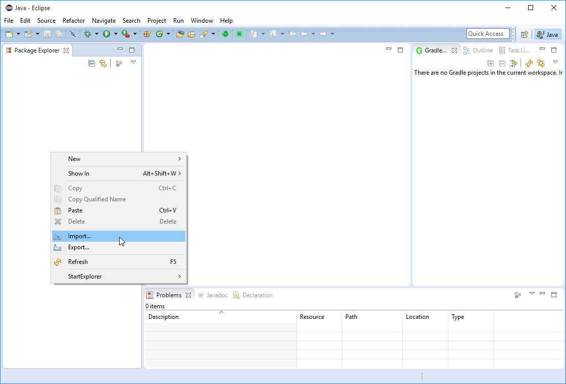 - Open Eclipse, right-click on the Package Explorer view.