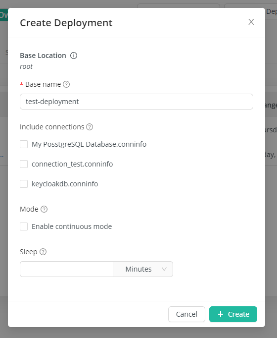 - Sleep: Only applies when continuous mode is enabled. Determines the delay between sequential execution of deployment endpoints.