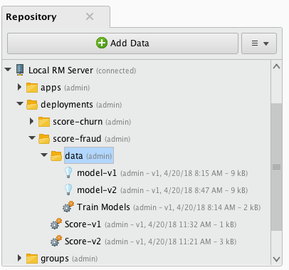 It contains two top-level processes called Score-v1 and Score-v2 and a data/ folder.