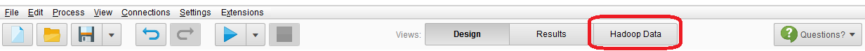 If the extension has been successfully intalled, Hadoop Data appears in the middle, as a new view, in the RapidMiner Studio startup window: