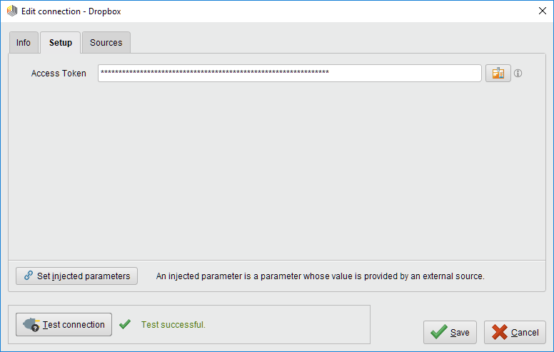 Create and switch to the Setup tab in the Edit connection dialog.To the right of the Access Token field, click the