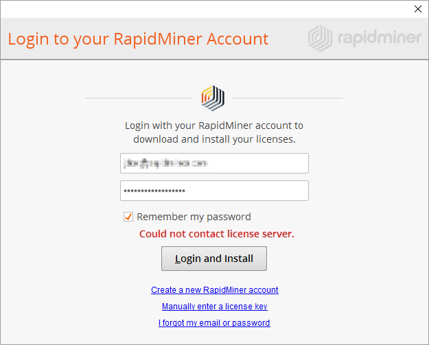 If you cannot access your RapidMiner.com account (for example, if RapidMiner is blocked by a firewall), your license cannot be automatically loaded.