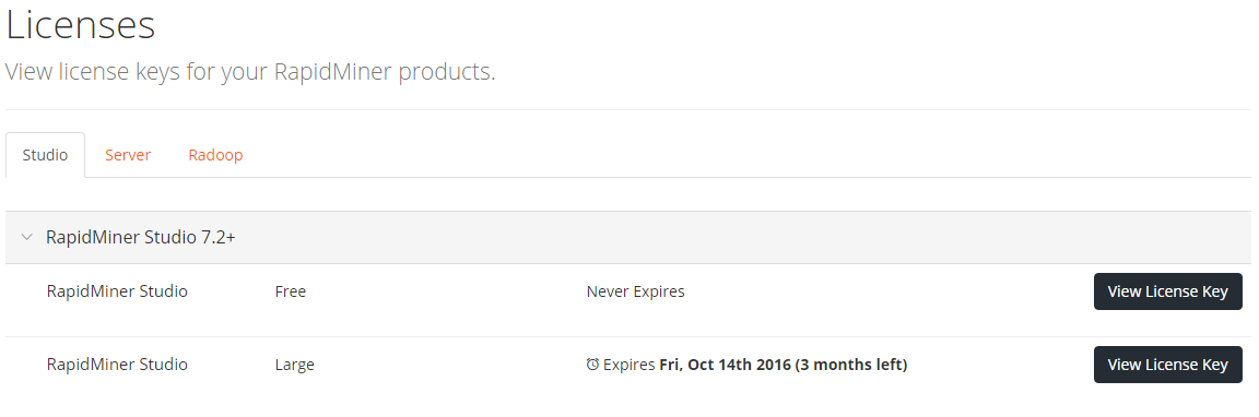 Note: Once installed, you can also add or update licenses using the Settings > Manage Licenses menu within the RapidMiner Studio application.