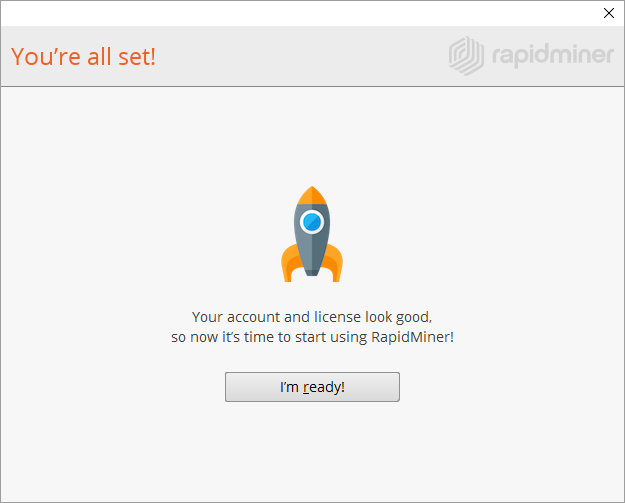 | Create a new RapidMiner account | If you do not yet have a RapidMiner account, a new browser window will open in which you can create it. |