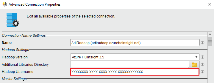 For certain Hadoop distributions, you may need to complete additional client-side configuration using the Advanced Connection Properties window. Cluster modifications usually need an SSH connection or access to a Hadoop management tool (for example, Cloudera Manager or Ambari). You may need to contact your Hadoop administrator to perform the cluster configuration steps.