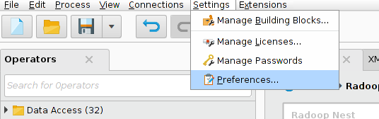 When the preferences window opens, select the Radoop tab: