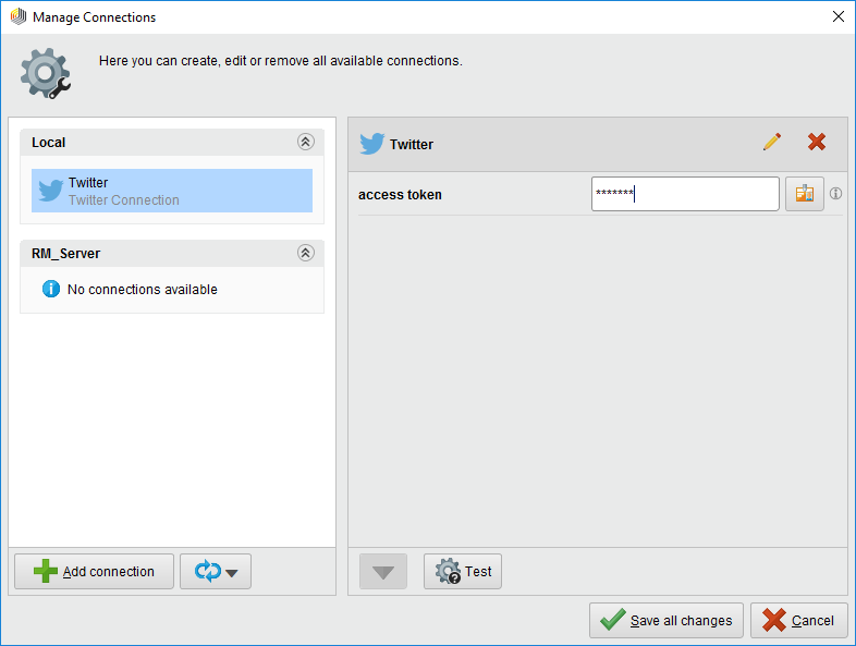 Edit button. For more details, see the instructions for assigning access rights.Click Save all changes to save your connection configuration.
