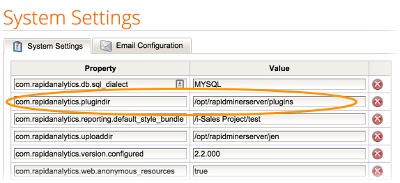 Locate RapidMiner Server's extension folder. If you are unsure, check the setting on the Administration > System Settings page. The folder location is the value defined for the property