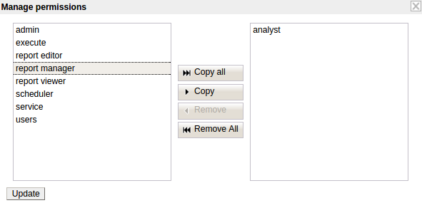 To permit a group to execute processes from the queue, select the group name from the left hand side group list and click Copy. This action will move the selected group(s) to the group list on the right hand side.