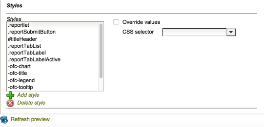 In the Styles section of the window, you can change the CSS definitions of the current bundle's predefined styles, and also add your own definitions: