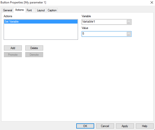 - Under the Actions list box, Set Variable will appear. On the right side open variable selection window by clicking the … button.