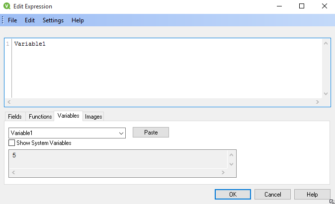 - An Edit Expression window will open. Click on the Variables tab, choose the variable from the dropdown menu and click Paste button.