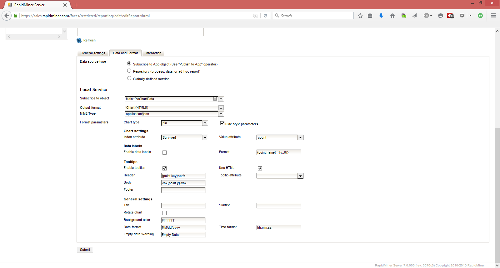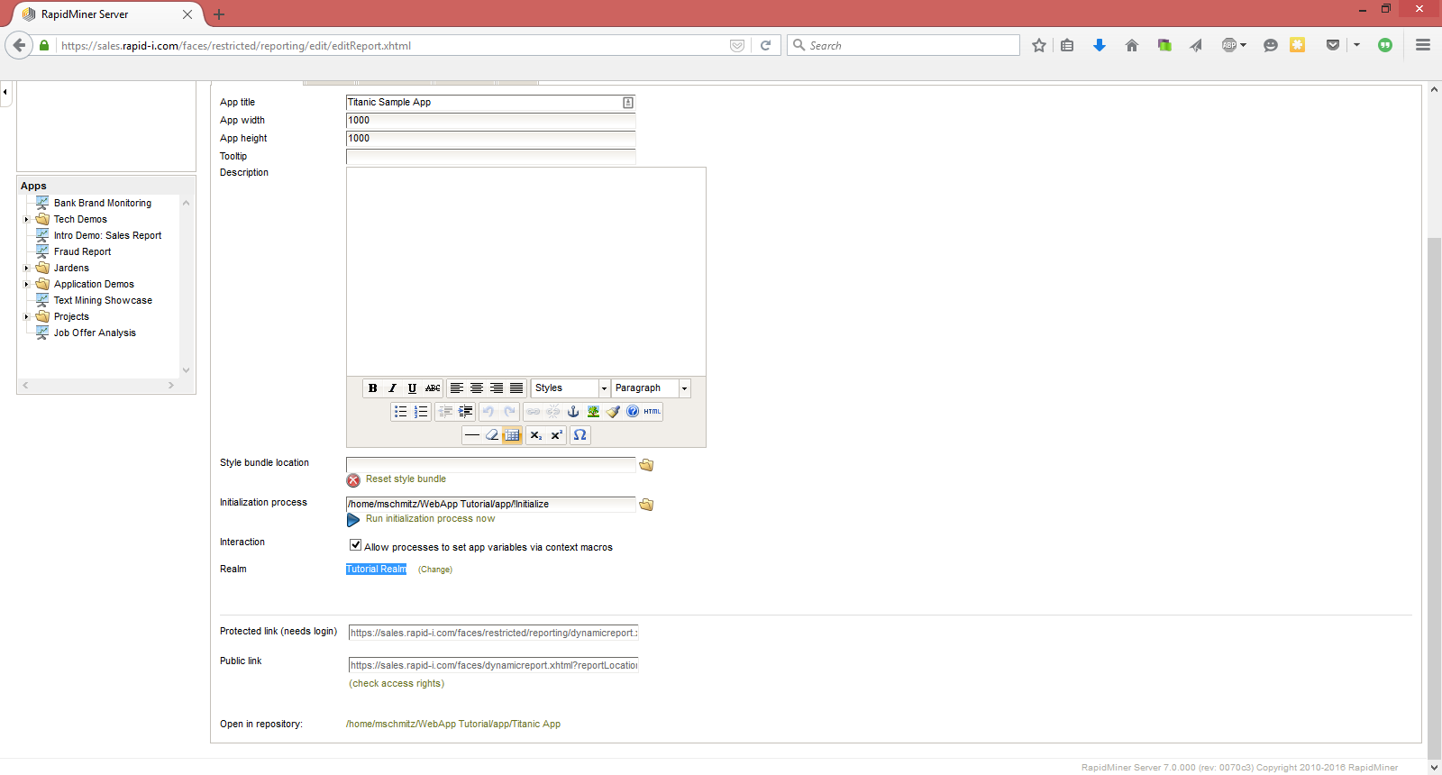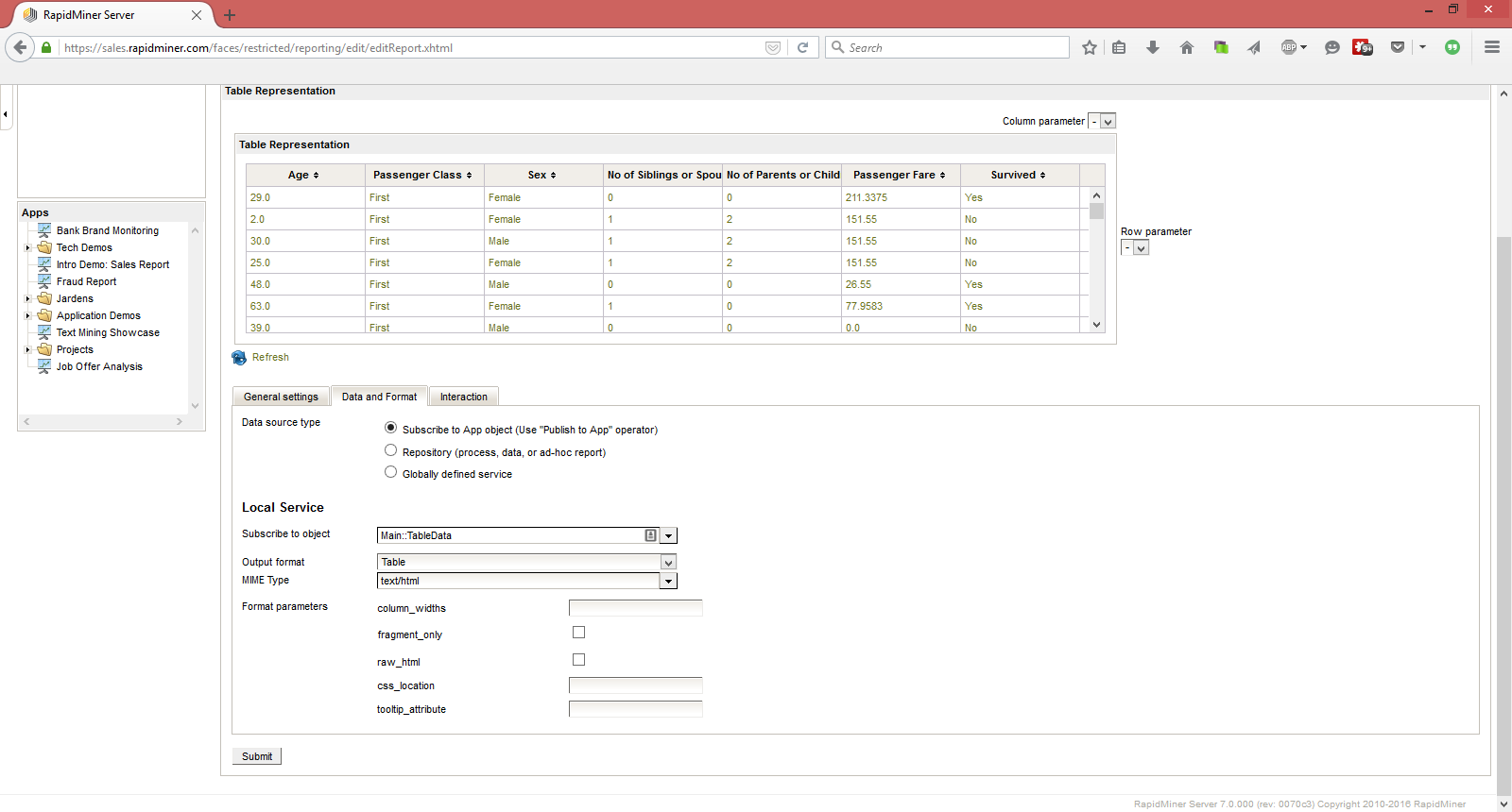 In this tutorial we will build a small Web App based on the Titanic data set. This Web App can be seen as a "hello world" Web App showing basic functionality. There are a lot of advanced functions possible by interacting with common web techniques (JavaScript, CSS, XSLT) or by creatively using RapidMiner processes (connections to Cloud Services, Web Mining, Databases etc.)