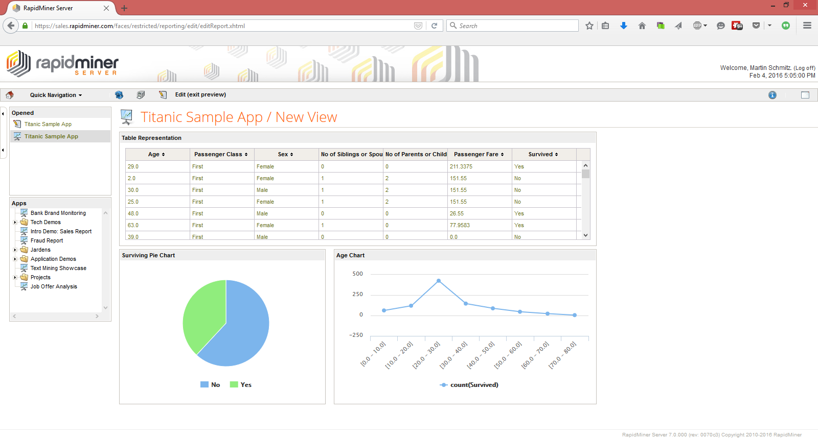 This is a general introduction to build Web Apps. In this article we will have an introduction on the Titanic dataset. The data set is part of RapidMiner 7.0 and newer.