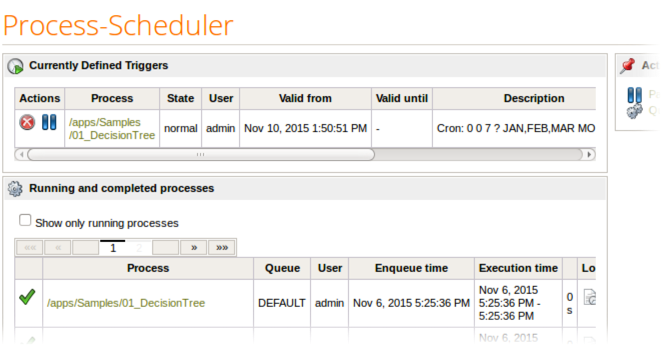 RapidMiner Server applies the trigger and displays it in the Process-Scheduler.