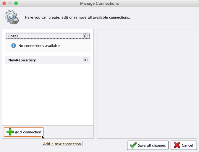 Open the Manage Connections dialog in RapidMiner Studio by going to