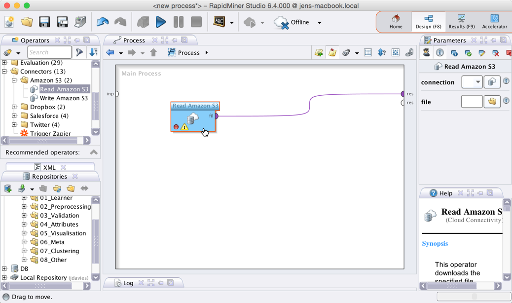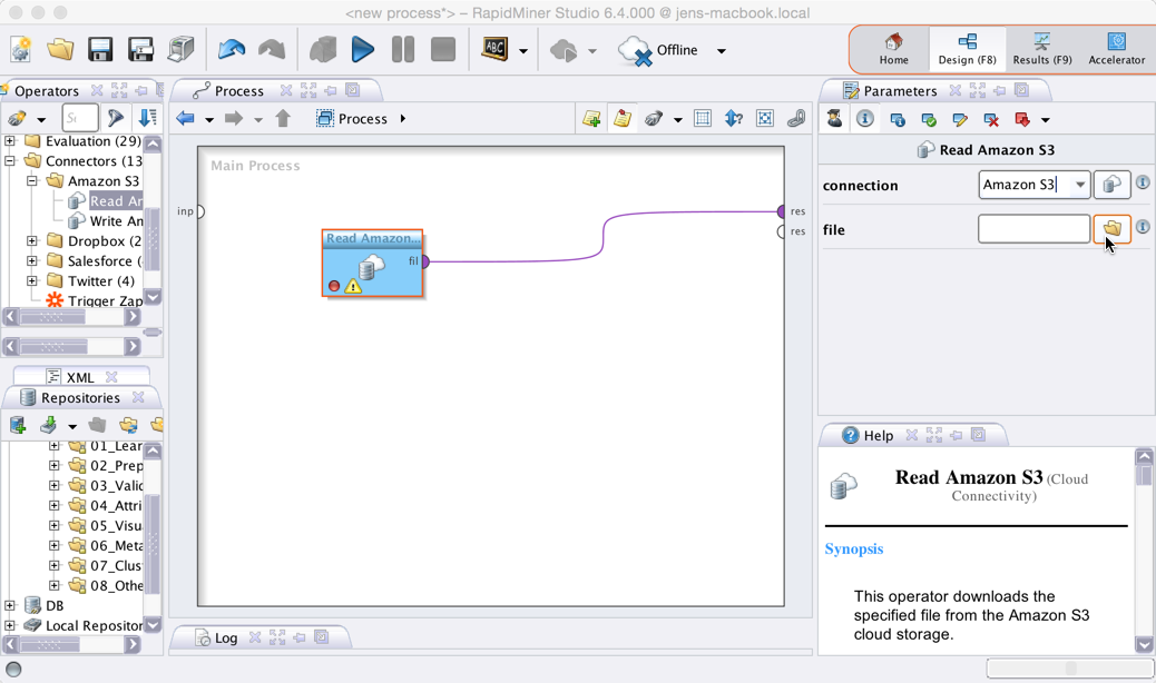 The Amazon S3 Connector allows you to access your Amazon S3 storage directly from RapidMiner Studio. Both read and write operations are supported. This document will walk you through how to: